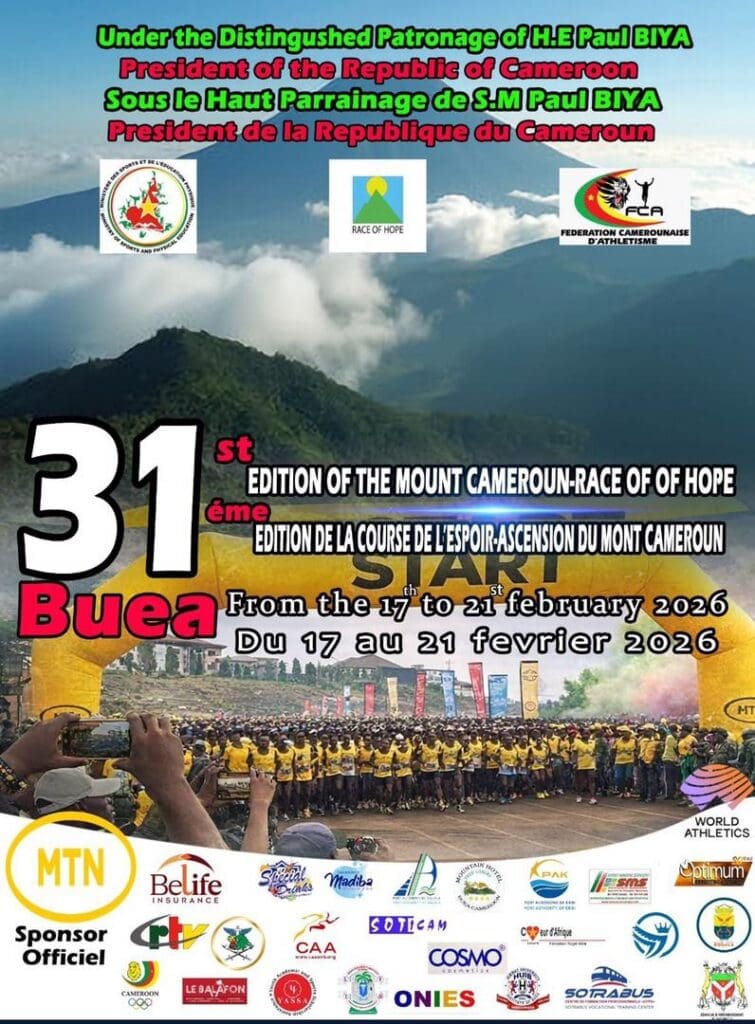 La ville de Buea, dans la région du Sud-Ouest, prête à vibrer au rythme de la 31ᵉ édition de l’Ascension du Mont Cameroun, encore appelée Mount Cameroon Race of Hope, prévue le 21 février 2026.