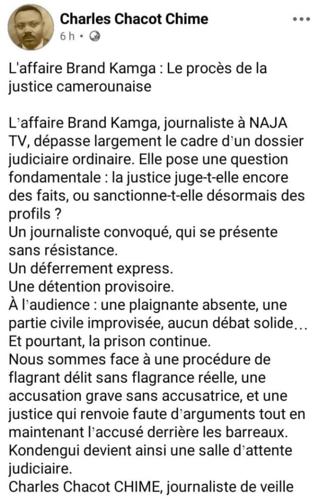 Entre soutien massif, doutes, émotions et exigences de vérité, ce dossier dépasse la personne de Brand Kamga. Il met à l’épreuve l’indépendance de la presse, la crédibilité de la justice et la capacité de l’État à garantir à la fois la sécurité juridique et la liberté d’expression. L’audience est prévue le 3 février 2026.