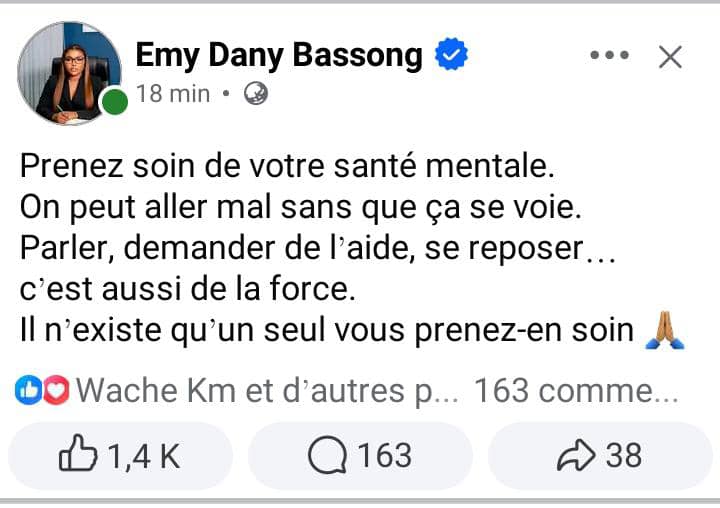 Au-delà du deuil, les réactions camerounaises ont pris une tournure engagée. Beaucoup ont vu dans la disparition d’Halima Gadji un signal d’alarme. « La dépression tue. Parlez quand ça ne va pas. Voir un psy, ce n’est pas une affaire de riches ou de fous », a écrit Adrien Eya’a. « On peut aller mal sans que ça se voie. Parler, demander de l’aide, c’est aussi de la force », a ajouté Emy Dany Bassong. Sur plusieurs pages culturelles camerounaises, un même message revient : normaliser la santé mentale en Afrique.