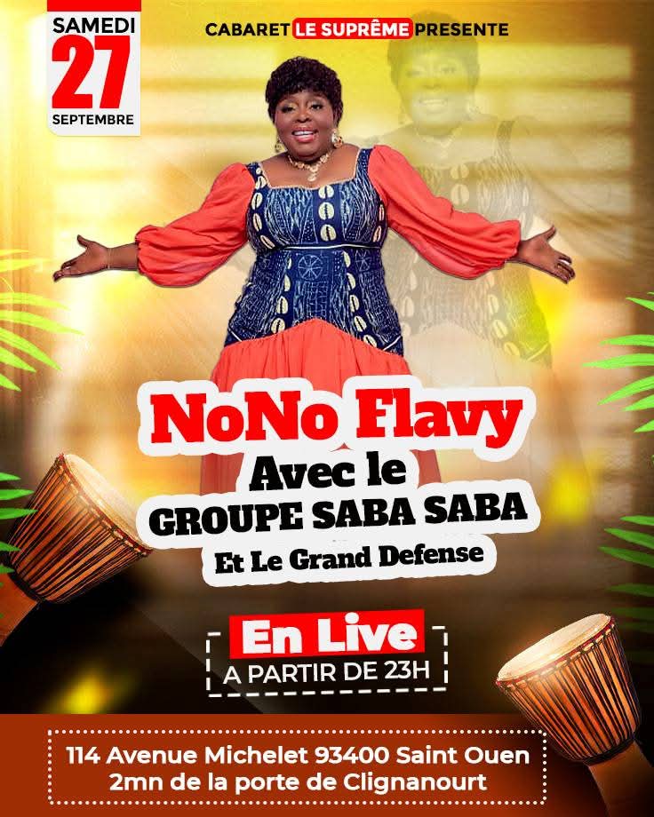 La célèbre chanteuse NoNo Flavy, figure du Makossa se produira ce samedi en concert live au Cabaret Le Suprême à Saint Ouen, près de Paris, à partir de 23h. Elle sera accompagnée du Groupe Saba Saba.