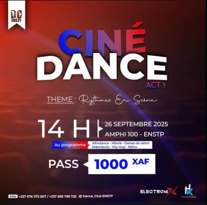 À l‘Amphi 100 de l’ENSTP, l’événement Ciné Danse Act 1 célèbre les « Rythmes en Scène« . Le programme inclut des démonstrations d’Afro-danse, Mbolé, Hip Hop et Rétro.