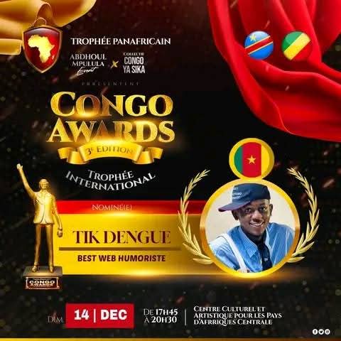 Le 14 décembre 2025, le Centre culturel et artistique pour les pays d’Afrique centrale, au Congo, accueillera la grande nuit des Congo Awards. Une cérémonie prestigieuse où l’élite du cinéma, de la musique et de l’humour africains sera célébrée. Le Cameroun y figure en force avec des noms bien connus : Tenor, Tekeur Soft, Darina Victry, Hortavie Mpondo, Muriel Blanche, Tik Dengue, Papy le Jongleur et Biscuit de Mer. Des figures qui portent haut les couleurs du pays et suscitent déjà de vifs débats autour de leurs catégories respectives.