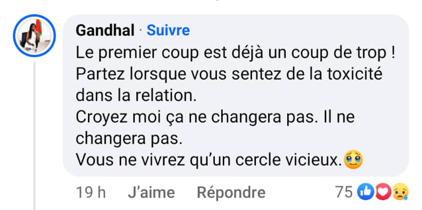 Loin d’un simple message de mise au point, ses mots résonnent comme un cri de détresse, un appel à la prise de conscience :« Je ne savais pas que frapper une femme à sang et de manière répétée était devenu quelque chose de normal dans notre société », a-t-elle déploré.