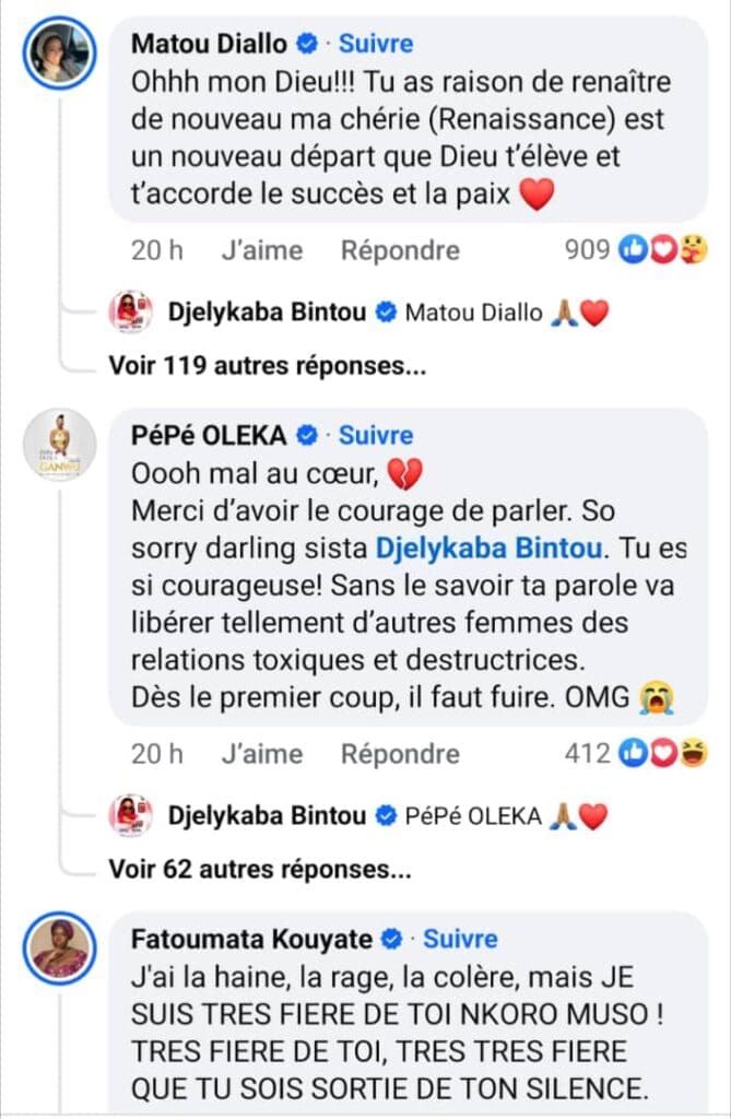 C’est avec ces mots que Djelykaba Bintou amorce sa déclaration. Pour la première fois, elle lève le voile sur ce qu’elle affirme avoir vécu : un mariage marqué par la douleur et l’humiliation : « Je ressens que la situation est devenue insupportable », a-t-elle écrit, avant d’ajouter : « J’ai compris que je ne peux pas rester piégée dans cette dynamique toxique ».