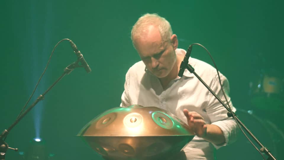 Installé derrière son handpan, instrument aux sonorités métalliques et enveloppantes, il a tissé un univers sonore à la fois hypnotique et profond. Chaque frappe, précise et délicate, révélait une maîtrise impressionnante de l’instrument, mêlant sensibilité, rythme et un sens aigu du dialogue musical.