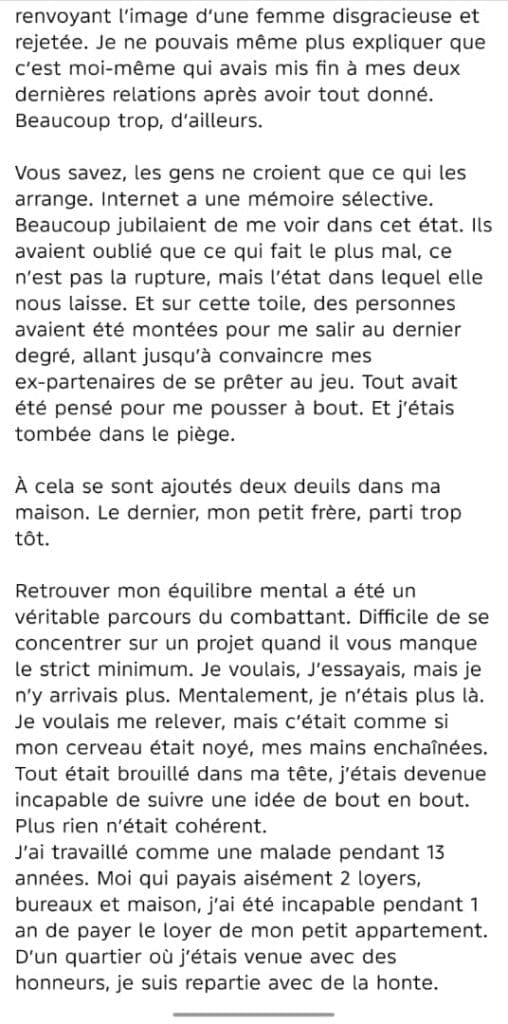 La star camerounaise conclut son témoignage par une note de résilience, affirmant que « rien ne pourra plus jamais la briser« . Elle rappelle que chacun doit fixer sa propre valeur et que « la douleur s’en va lorsqu’elle a fini d’enseigner« .