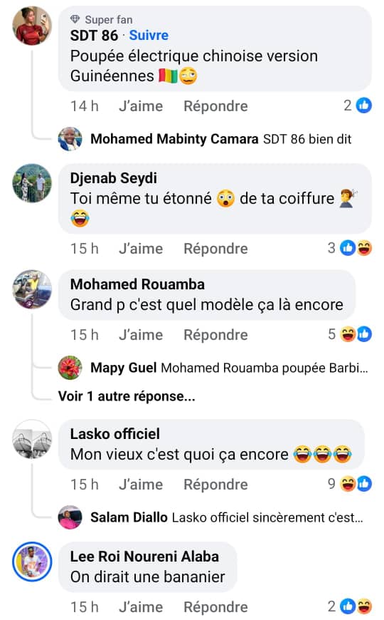 La publication n’a pas tardé à devenir virale. Relayée massivement, elle a instantanément attiré des centaines de commentaires, partagés entre humour, étonnement et critique. Certains internautes, visiblement surpris, ont réagi avec des remarques piquantes : « Poupée électrique chinoise version Guinéenne » ou encore « Faut nous respecter et enlever ça vite ». D’autres, plus bienveillants, ont salué l’audace de la star : « Juste magnifique » ou encore « Les tresses te vont bien ».