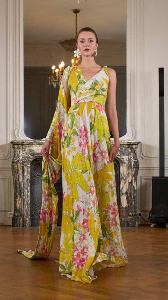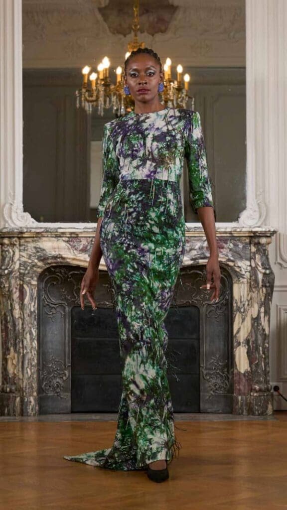 Sur le podium, 17 mannequins, noirs et blancs, ont présenté des silhouettes aux imprimés floraux, broderies minutieuses, appliqués végétaux, porcelaine, laine biodégradable, perles semi-précieuses. Un hommage à un luxe à la fois durable, artisanal et profondément engagé.