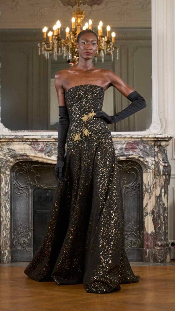 Imane Ayissi, designer invité, partage la scène avec d’autres maisons prestigieuses à l’instar de Schiaparelli, Iris van Herpen, Georges Hobeika, Julie de Libran, Giambattista Valli, Chanel, Giorgio Armani Privé, Balenciaga, Maison Margiela, Elie Saab, Zuhair Murad, entre autres.