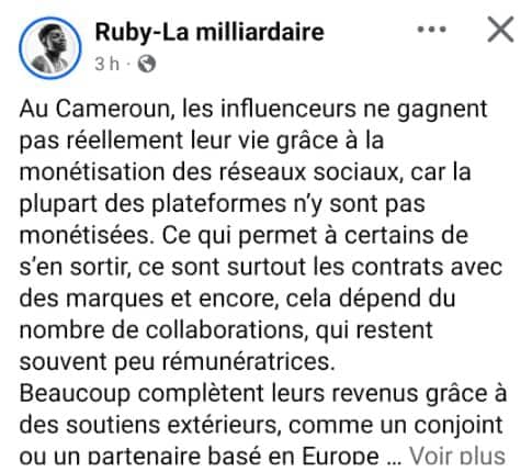 Pour beaucoup, cette pression fiscale arrive alors que l’accès à la monétisation directe (comme sur Facebook) reste un parcours du combattant au pays. « Moi qui n’ai jamais rien reçu de l’État… c’est mieux de se battre pour que Facebook débloque la monétisation au Cameroun« , s’insurge un créateur, relayant le sentiment d’une communauté qui se sent « traquée » avant d’être soutenue.