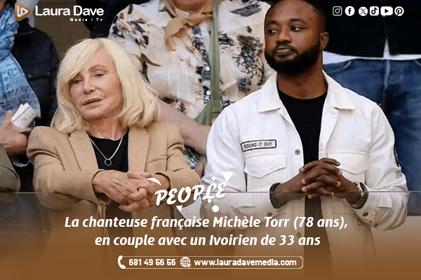 « L’amour n’a pas d’âge » a-t-on coutume de dire, et Michèle Torr en est la preuve vivante. À 78 ans, la chanteuse française Michèle Torr, qui a marqué la scène avec des titres comme « J’Aime », « Emmène-moi danser ce soir », certifiés disques d’or dans les années 70, et surtout son légendaire tube « Pas bien dans sa vie », repris dans les kermesses des lycées et collèges africains dans les années 90, vit une romance qu’elle assume pleinement avec Stéphane, un Ivoirien de 45 ans son cadet.
