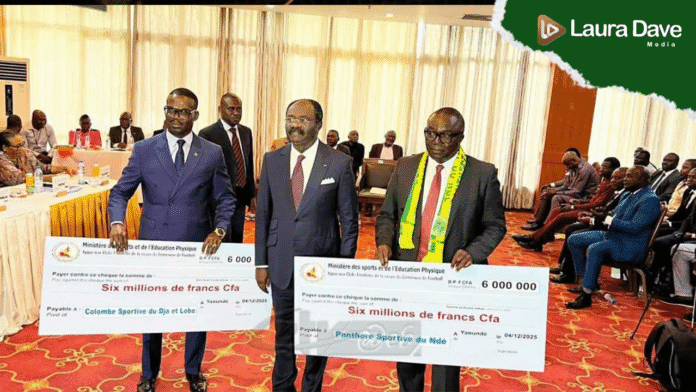 Les finalistes de la Coupe du Cameroun 2025, Colombe Sportive du Dja et Lobo et Panthère Sportive du Ndé, ont chacun reçu 6 millions de FCFA de l’État pour préparer la finale. Cette enveloppe a été remise mercredi dernier par le ministre des Sports et de l’Education Physique, au cours d’une cérémonie organisée dans son ministère .