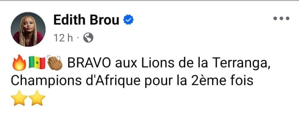 Edith Brou, la célèbre influenceuse et entrepreneure a salué la performance des Lions de la Teranga.