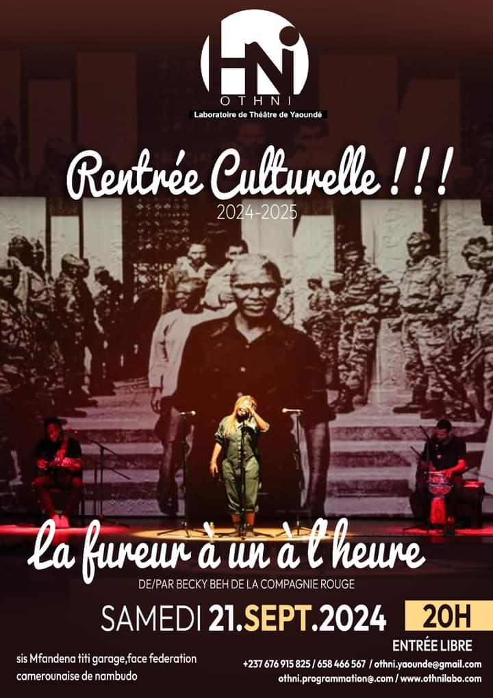 Du côté de Yaoundé, c’est la rentrée culturelle au Laboratoire de théâtre de Yaoundé (OTHNI). Ce samedi 21 septembre, la pièce théâtrale « La fureur à un à l’heure » de Becky Beh de la compagnie Rouge sera jouée à partir de 20H00.