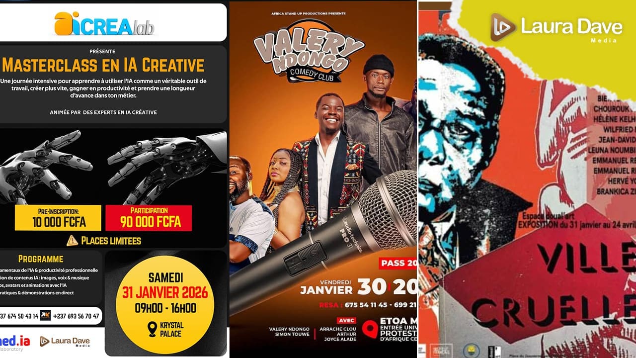 Le dernier week-end de ce mois de janvier s’ouvre sur une programmation intense. Des quartiers de Douala aux scènes de Yaoundé, en passant par l’Est du pays et la capitale guinéenne, les acteurs de la culture se mobilisent pour offrir des moments d’évasion et de réflexion. Voici votre feuille de route pour ne rien manquer des événements phares de ces prochains jours.