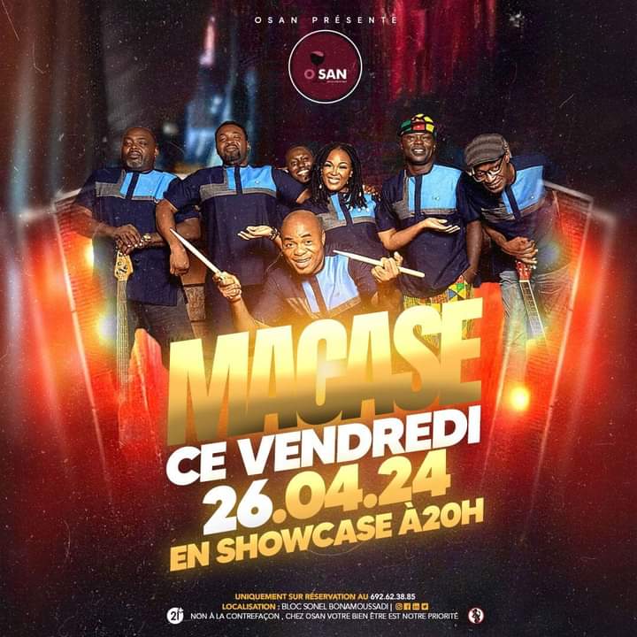 Au quartier Bonamoussadi à Douala, le groupe MACASE sera sur la scène de l’espace de détente O’san ce vendredi 26 avril 2024. Le célèbre groupe qui a formé plusieurs artistes à l’instar de Blick Bassy, et Sandrine Nnanga pour ne citer que ceux-là, livrera pour le plaisir de leurs fans l’intégralité des chansons de leur dernier album »Carpe Diem » sorti en 2023. Le chanteur de Bikutsi Raphran le Bantou assurera la première partie du Show.