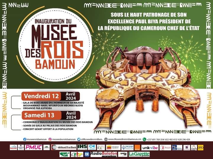 À l’Ouest du Cameroun et particulièrement à Foumban sera inauguré ce samedi 13 avril le musée des Rois Bamoun. Sous le haut patronage de S.E Paul Biya, l’événement se déroulera sur deux jours, les 12 et 13 avril. Temple à plusieurs facettes et construit sur une superficie de 7301 mètres carré, le musée des Rois Bamoun est l’un des espaces chargés d’histoire du Cameroun à travers ses plus de 12500 objets d’arts exposés. Afin de rehausser ce grand rendez-vous historique et culturel, plusieurs artistes vont se succéder sur scène à l’instar de Maalhox le vibreur, Fadil le Sorcier, Ramson le Phénomène, Rachilda Jolie, pour ne citer que ceux-ci.