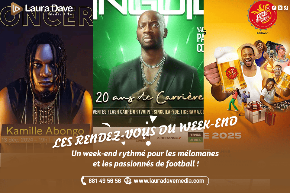 Ce week-end, c’est l’occasion rêvée de se laisser emporter par la musique, le football et les événements festifs qui animent les villes de Yaoundé et de Douala. Amateurs de concerts et de bonnes vibes, vous serez comblés par un programme varié. Les fans de football ne seront pas en reste. Vous avez assez pour profiter pleinement de ce week-end de décembre.