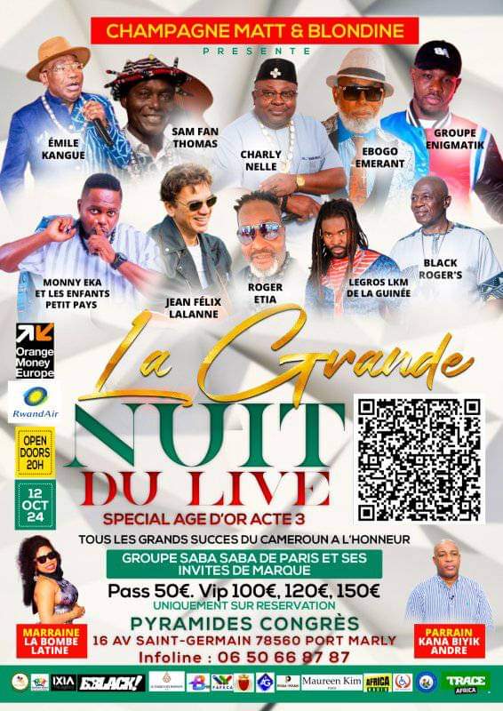 Les mélodies d’hier sont en live ce 12 octobre à la grande nuit du Live portée par champagne Matt et Blondine. Émile Kanguè, Sam Fan Thomas, Charly Belle, Ebogo Emérant, Mony Eka et les enfants de Petit Pays, sont entre autres, les têtes d’affiche de cette soirée spécial ‘’Age d’or’’. L’initiative portée à son acte 3 aura lieu aux Pyramides congrès dans la ville de Seine.