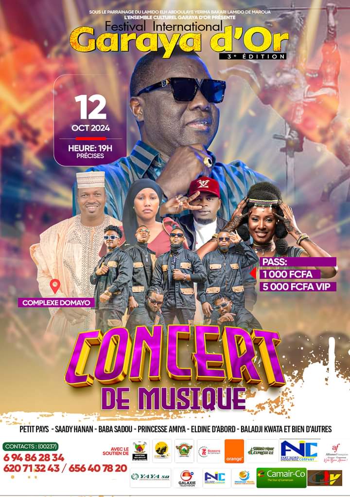 Au septentrion et précisément dans la ville de Maroua, la star interplanétaire Petit-Pays y est annoncé pour un show dans la journée du samedi 12 octobre. Avec la participation d’artistes locaux tels que Saady Hanan, Baba Sadou, Prince Amiya, Eldine d’abord et le célèbre groupe Baladji Kwata, ce concert de musique s’inscrit dans le cadre de la 3ème édition du Festival International Garaya d’Or.