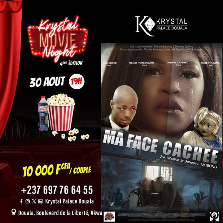 Si vous êtes dans la capitale économique du Cameroun Douala, le Krystal Palace sera heureux de vous compter parmi ses visiteurs à l’occasion d’une double projection cinématographique. Les films »TEKOU » et »MA FACE CACHÉE » produits par la maison de production Glory Be Entertainment de Gabriel Hervé Gwet y seront projetés ce vendredi 30 août dès 19h00.