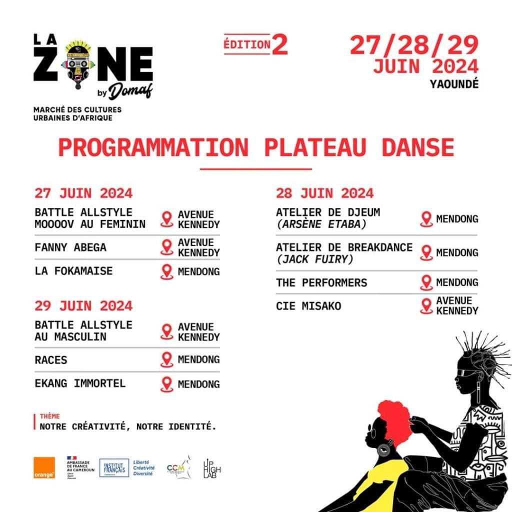 La deuxième édition de La Zone by Douala Music Art Festival est de retour à Yaoundé depuis le 24 juin dernier. Ce week-end, profitez des démonstrations de BMX, des performances de danse, des arts visuels et de la mode, tout ceci à l’avenue Kennedy et au quartier Mendong. Placé sous le thème « Notre créativité, notre identité« , vous y vivrez des moments uniques pour profiter de la culture urbaine kamer comme il se doit. La zone Douala Music Art Festival n’attend que vous.