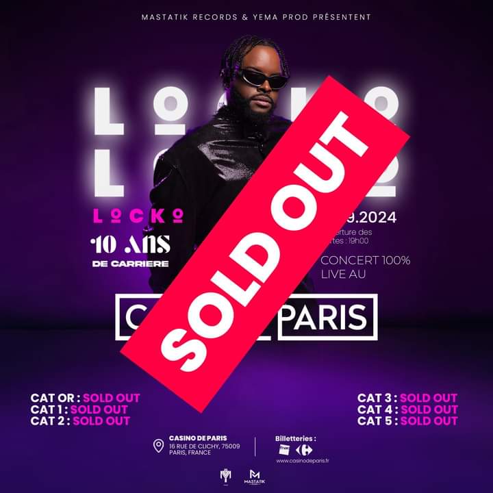 10 ans déjà que la star camerounaise et adepte du R&B Locko livre aux mélomanes les plus belles mélodies de son répertoire musical. Après le Palais Polyvalent des Sports de Yaoundé le 8 mars dernier, c’est autour du Casino de Paris de recevoir Charles Arthur Locko Samba, patron de Yema Prod. Ce concert très attendu par la diaspora promet des étincelles.