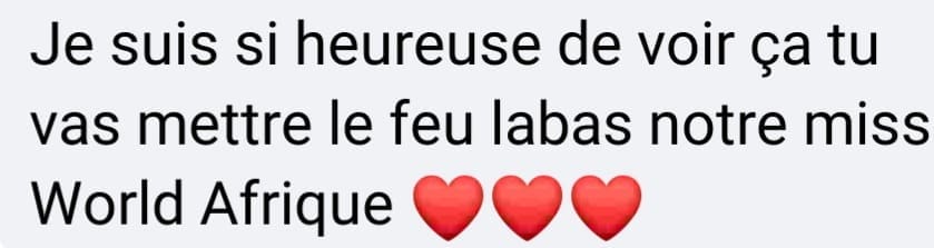 « Tu vas mettre le feu là-bas, Miss World Afrique »,
