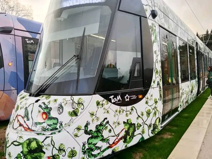 Tant désirée, tant attendue, la ligne 5 du tramway de Montpellier est officiellement entrée en service ce 20 décembre 2025, dans une atmosphère de fête populaire et de ferveur collective. Au cœur de ce projet d’envergure, un nom résonne avec force : Barthélémy Toguo. L’artiste camerounais de renommée internationale, artiste UNESCO pour la paix et fondateur de Bandjoun Station, signe l’habillage intégral des rames avec une œuvre monumentale et poétique intitulée « Feuille de vie”.