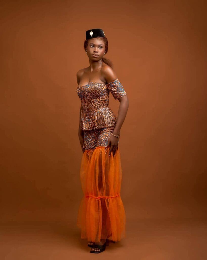 Toutes ses tenues pour le concours ont été confectionnées par le styliste camerounais, Ciseaux d’Or.