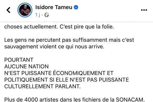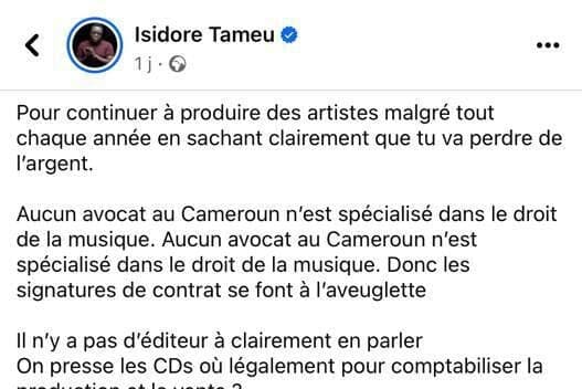 Sur la monétisation des contenus vidéos sur la GAFA (Google Amazone Facebook Apple, Tik Tok), Taphis écrit : « Tu peux avoir un million de vues YouTube venant du Cameroun qui te rapporte 0 FCFA… Le statut de l’artiste un problème permanent ! il n’y a pas d’école de musique, pas de conservatoire, pas de grandes salles de spectacle dédiées à l’art musical […] ».
