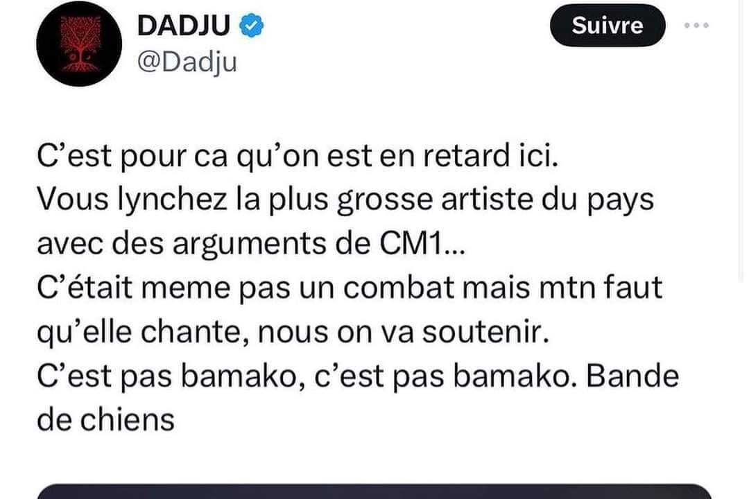 Les acteurs de la musique urbaine n’ont pas tardé à prendre la parole pour soutenir Aya Nakamura. Dadju en tête de fil. Il n’a pas contenu sa colère sur X : « C’est pour ça qu’on est en retard ici. Vous lynchez la plus grosse artiste du pays avec des arguments de CM1… C’était même pas un combat, mais maintenant faut qu’elle chante, nous on va soutenir. C’est pas bamako, c’est pas bamako. Bande de chiens ».
