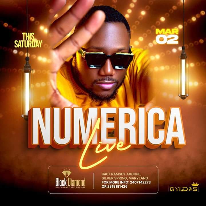 Aux États-Unis, Numerica fera résonner sa voix. Le chanteur camerounais offrira une performance live au Black Diamond, situé à 8407 Ramsey Avenue, Silver Spring, dans le Maryland. »Cherchons l’argent », son nouveau titre, ne manquera pas à coup sûr lors de cette prestation.