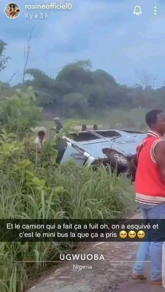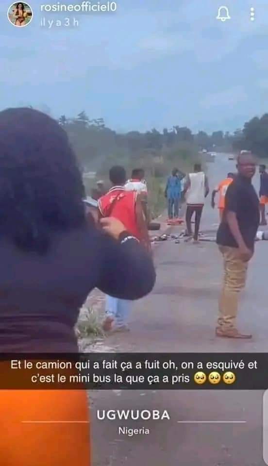 Les faits se sont déroulés ce samedi 18 mai 2024 aux environs de 15 heures sur la route d’Ugwouba, la ville d’entrée de l’Etat d’Enugu dans le sud du Nigéria. Sur les vidéos publiées par l’actrice miraculée sur son compte Snapchat, on aperçoit des corps immobiles couchés sur la chaussée :