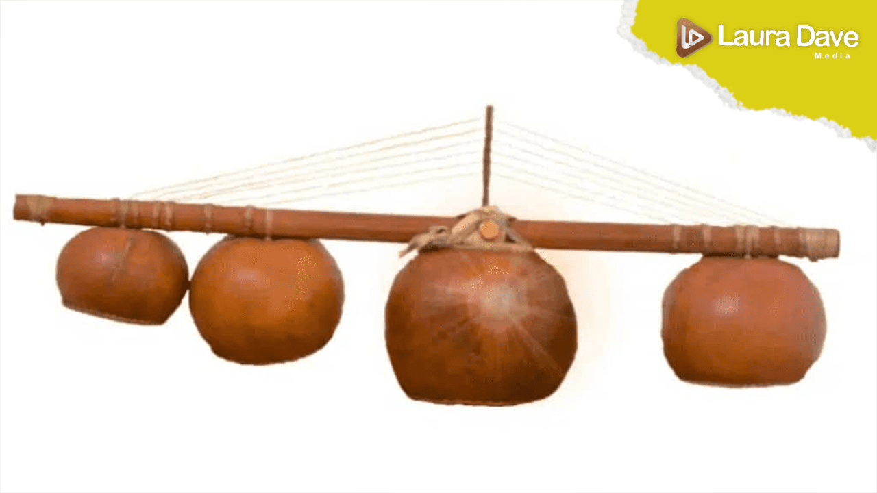 L’art du Mvet est indissociable de son instrument éponyme. Historique et essentiel, le Mvet est un instrument à cordes traditionnel dont la structure même est chargée de symboles. L’instrument est composé d’une tige de bambou surmontée de trois calebasses et un chevalet central et des cordes .
