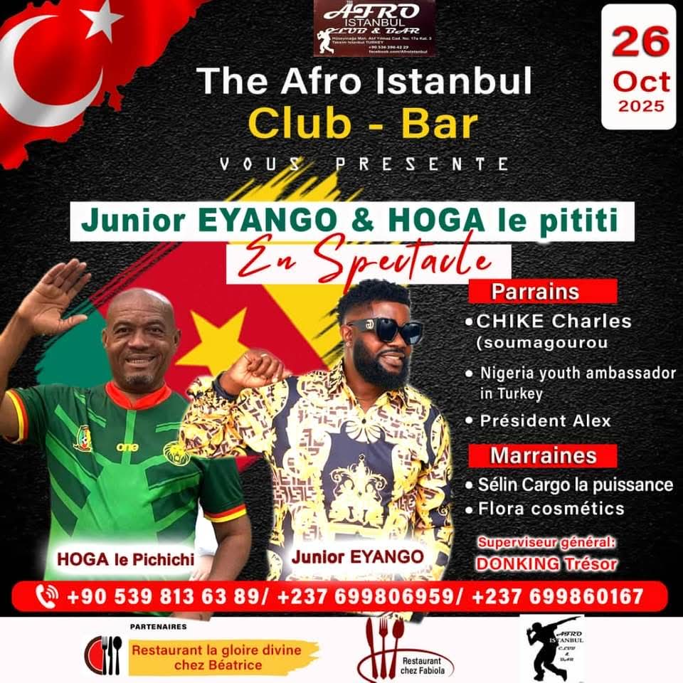 Les artistes Junior Eyango et Hoga le Pichichi sont sur scène pour un show ce dimanche 26 octobre au Club Afro Istanbul.