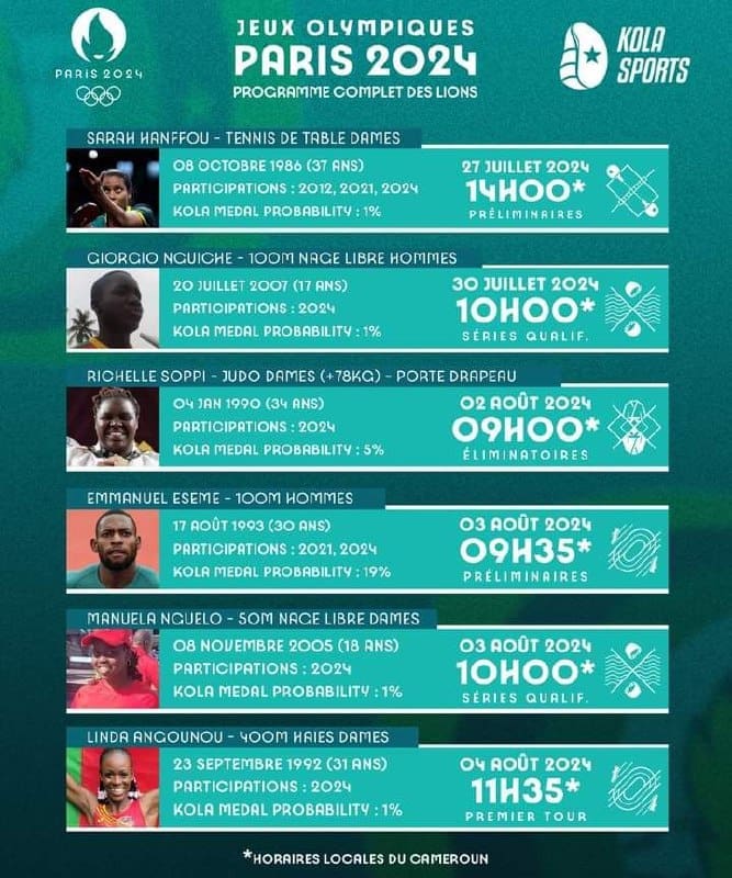 Le nombre de sportifs camerounais présent aux Jeux Olympiques de Paris a diminué depuis les éliminations de Sarah Hanffou et Giorgio Nguichie. Une situation qui porte désormais à 4 le nombre d’ambassadeurs encore en compétition.