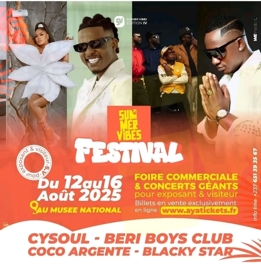 Du 12 au 16 août 2025, le Musée national de Yaoundé s’animera au rythme effervescent de la 4ᵉ édition du Summer Vibes Festival. Devenu un rendez-vous incontournable, cet événement rassemblera un casting, alliant figures emblématiques et talents émergents, pour une célébration haute en couleur de la musique, des arts et de la créativité camerounaise.