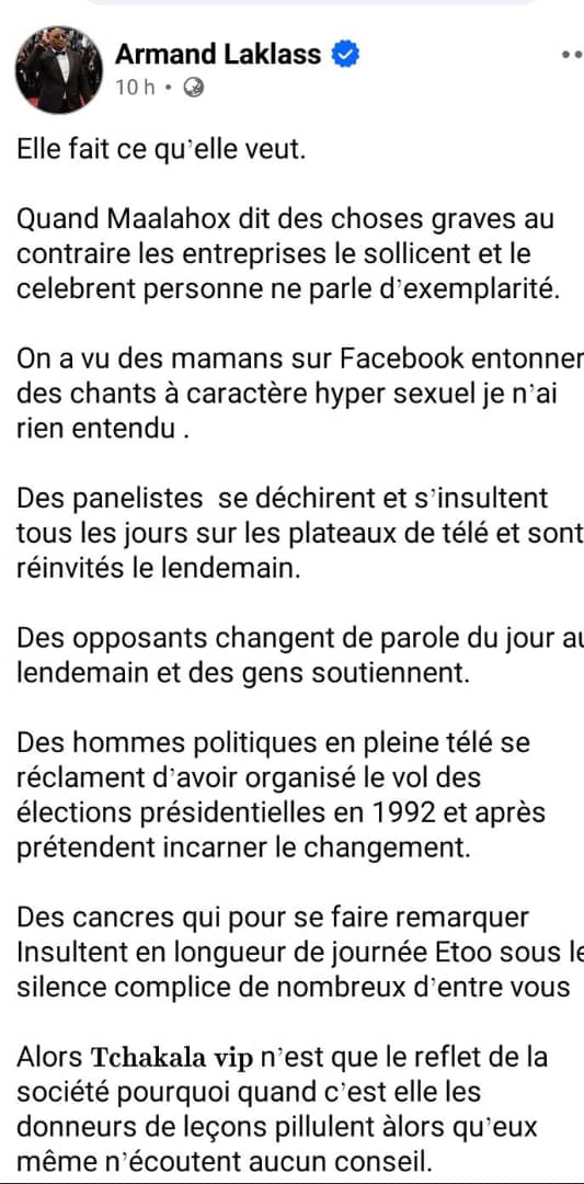 La séquence n’a pas tardé à susciter des prises de position tranchées. L’actrice Flavienne Tchatat a qualifié la prestation de « vulgaire », tandis que le rappeur Valsero s’est montré encore plus sévère, affirmant n’avoir « rien vu d’aussi dégoûtant sur scène ». À l’inverse, l’artiste Armand Laklass a pris sa défense, estimant que la chanteuse n’est que « le reflet d’une société » qui tolère d’autres dérives médiatiques mais s’indigne lorsqu’une performeuse franchit certaines limites.