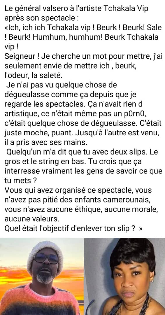 Un spectacle musical qui s’annonçait festif ce samedi 14 février 2026 à Douala, a viré à la polémique. En pleine prestation, l’artiste camerounaise Tchakala VIP a retiré son sous-vêtement de couleur verte , provoquant stupeur, rires et indignation selon les spectateurs présents et les vidéos largement relayées sur les réseaux sociaux. Si certains fans ont salué une mise en scène “audacieuse” destinée à électriser le public, d’autres ont dénoncé un geste jugé provocateur et inapproprié, surtout à la veille des célébrations liées aux droits des femmes.