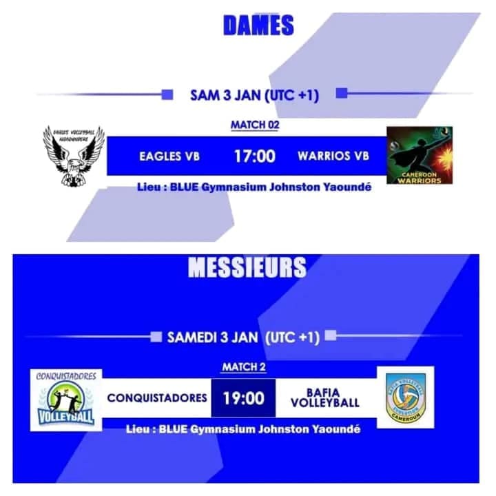 La 1ère journée de la Blue Volleyball League (BVL) s’est clôturée au gymnasium de Johnston à Yaoundé avec des performances remarquables des clubs camerounais. Chez les dames, Warriors VB a dominé Eagles VB 3 sets à 0 (26-24, 25-18, 25-19). Chez les messieurs, Conquistadors VB a remporté son match contre Bafia VB sur le même score (25-20, 25-18, 29-27).