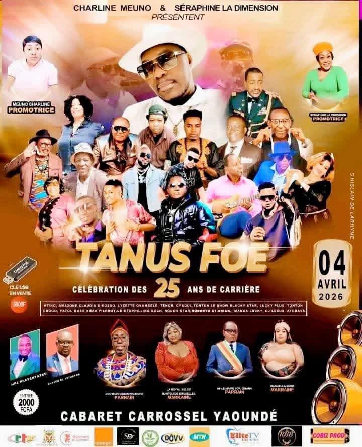 Le Cabaret Carrousel de Yaoundé sera en fête ce samedi 04 avril pour célébrer le quart de siècle de carrière de Tanus Foe. Un spectacle exceptionnel entouré de nombreux artistes invités (K-Tino, Ama Pierrot, Ténor, etc.) pour rendre hommage à une figure de la musique locale.