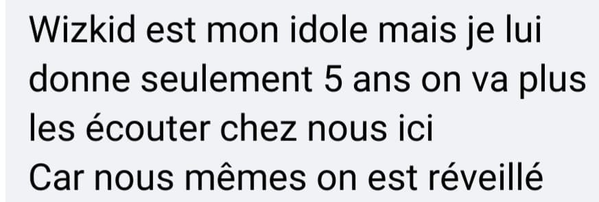 « Wizkid est mon idole mais je lui donne seulement 5 ans on va plus les écouter chez nous ici Car nous-mêmes on est réveillé «