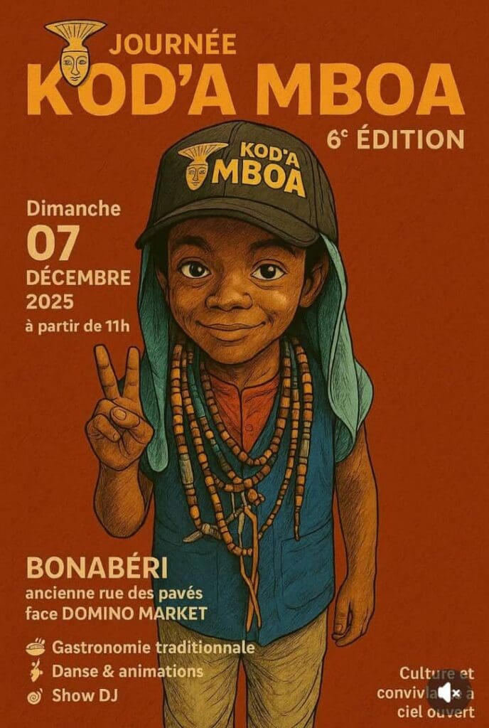 Le dimanche 7 décembre dès 11h, Bonabéri accueille la 6ᵉ édition de la Journée Kod’a Mboa, un événement dédié aux valeurs culturelles, à la gastronomie et au vivre-ensemble.