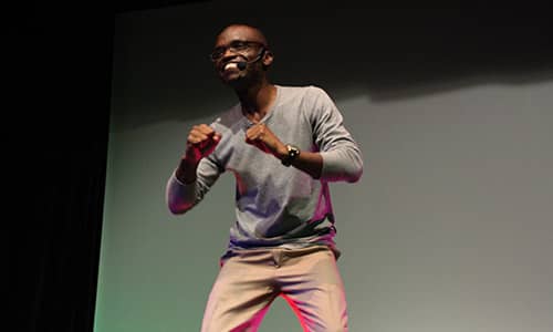 s’inscrire à l’université de Yaoundé 1 dans le département des arts où il obtient un master en production théâtrale.
